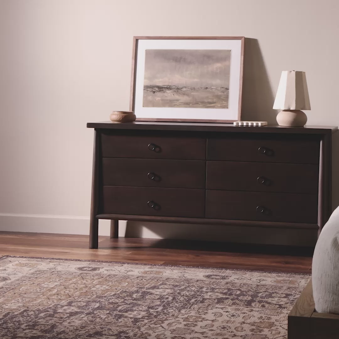 Freddie en teinte brun capture l'essence du mobilier français d'époque avec une présence incontournable. Construite en bois de manguier massif, elle arbore des pieds fuselés et un plateau en saillie qui soulignent son caractère distinctif. Ses six tiroirs généreux, pourvus de poignées en fonte coulée, conjuguent élégance et praticité. Une pièce maîtresse qui enrichit votre intérieur avec une sophistication intemporelle.